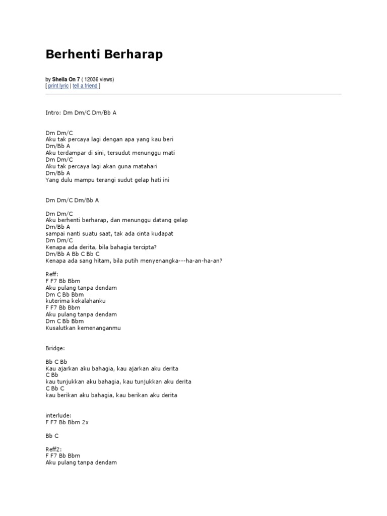 Chord Berhenti Berharap By Sheila On 7 Chordlicious
