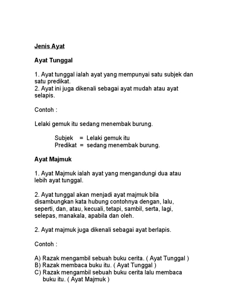 Contoh Ayat Majmuk Dan Ayat Tunggal