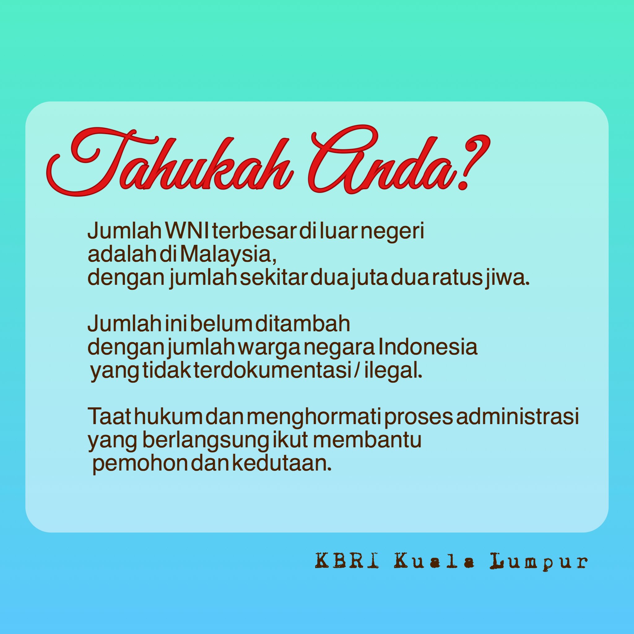 Kbri Kuala Lumpur On Twitter Jumlah Wni Terbesar Di Luar Negeri Adalah Di Malaysia Mencapai Sekitar Dua Juta Dua Ratus Jiwa Diluar Yg Tdk Terdokumentasi Peduliwni Https T Co 82mqubqfjo