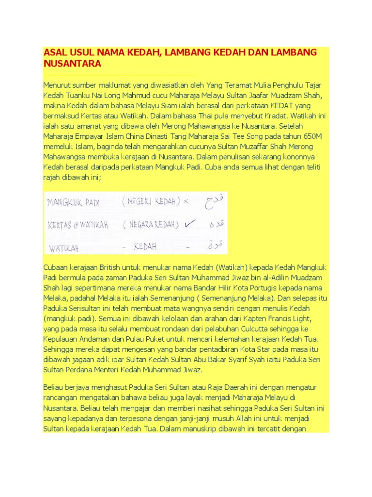 Asal Usul Nama Negeri Kedah Dan Kelantan