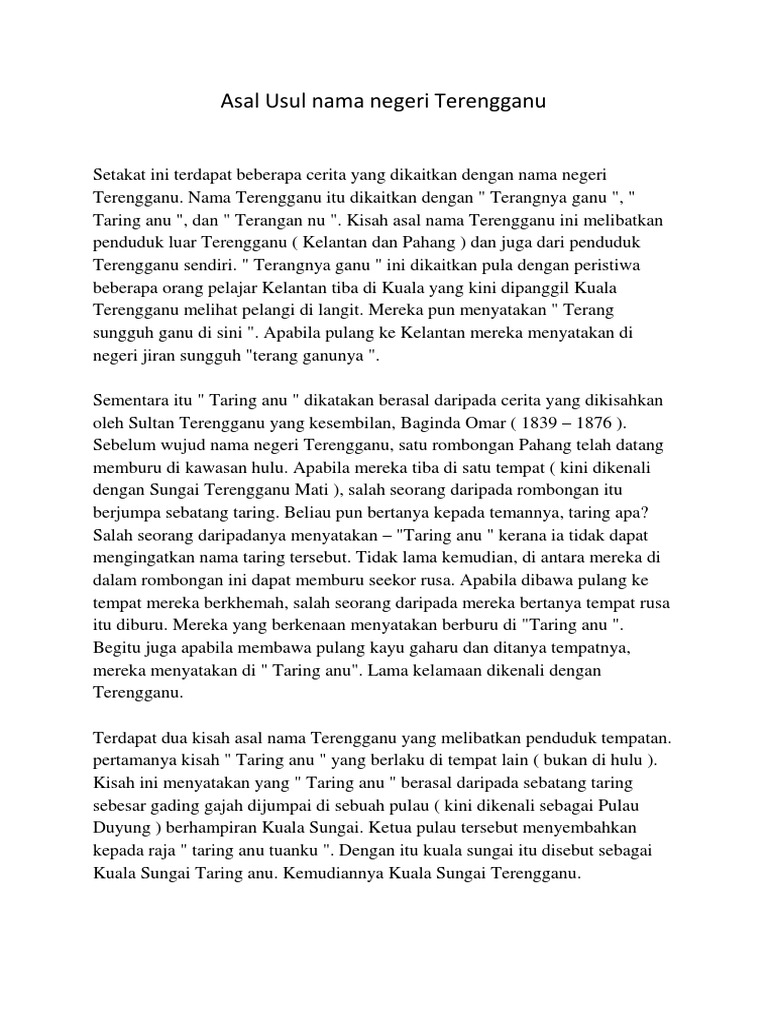 Terengganu Destinasiku Asal Usul Nama Terengganu