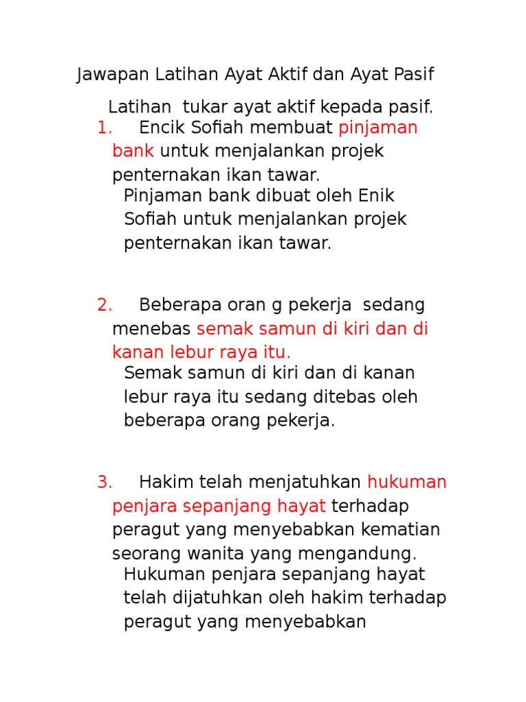 Jawapan Latihan Ayat Aktif Dan Ayat Pasif Mei 2012