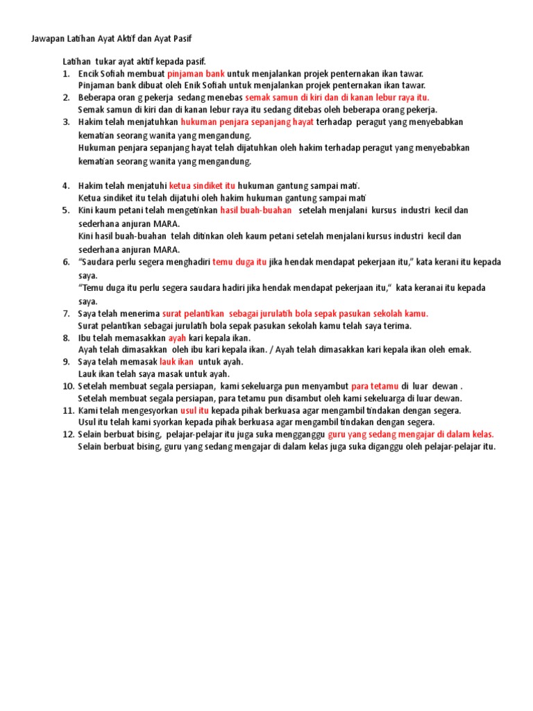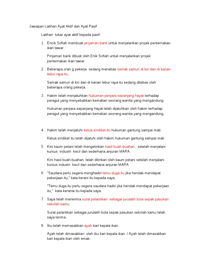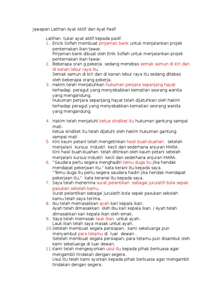 Jawapan Latihan Ayat Aktif Dan Ayat Pasif Mei 2012 Doc