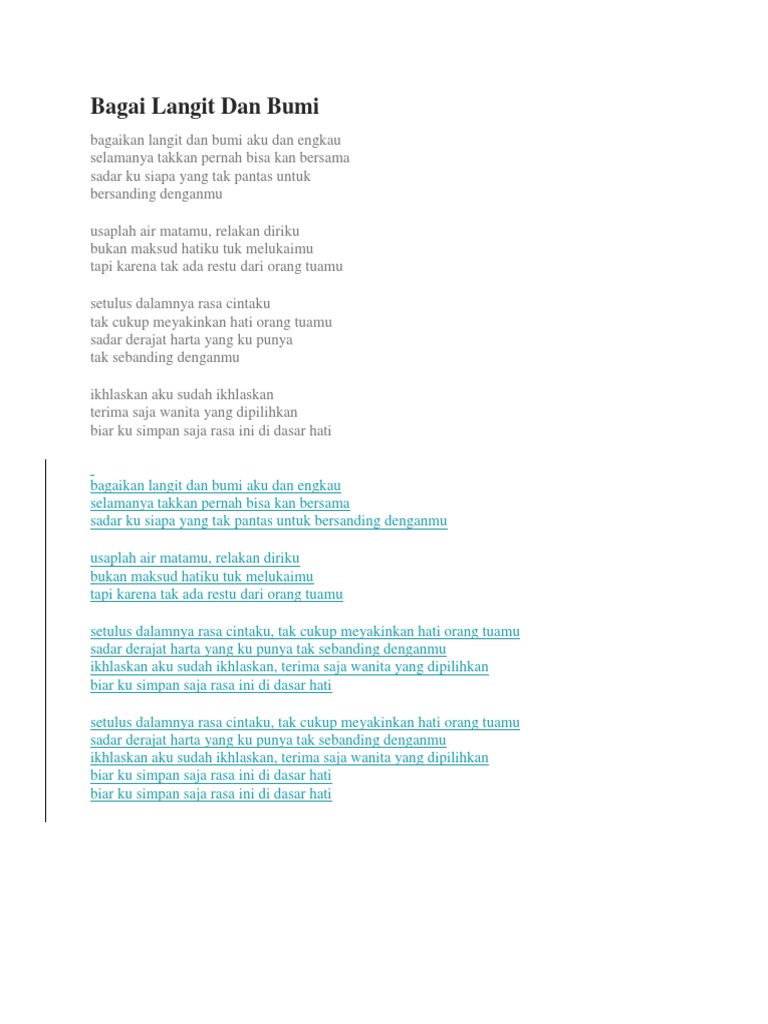 Bagai langit dan bumi. A c m bagaikan langit dan bumi d aku dan engkau a selamanya takkan pernah bm bisa kan bersama f m sadar ku siapa e yang tak pantas untuk a bersanding denganmu. Kami adalah tempat download lagu terbaik jadi jangan lupa cek lagu via vallen yang lainya. Kamus peribahasa dan simpulan bahasa melayu. Tersedia untuk mp3 di semua hasil via vallen bagai langit dan bumi mp3 download klik unduh untuk mengunduh file atau dapat memutarnya dengan mengeklik bermain.