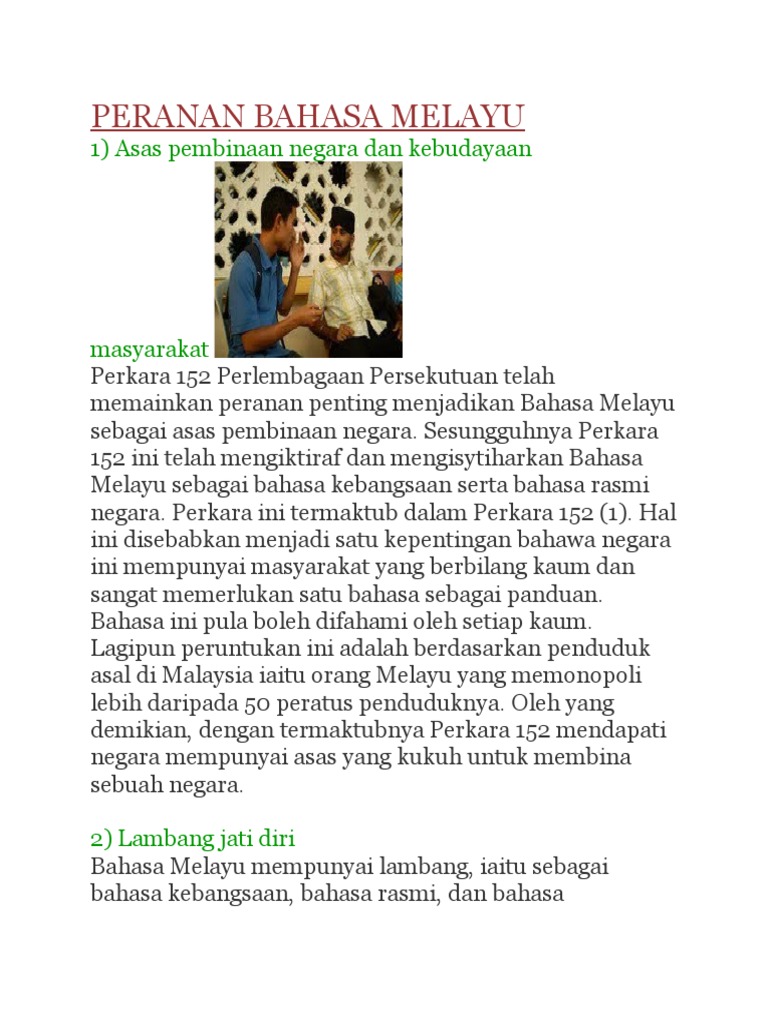 Bahasa Melayu Sebagai Bahasa Rasmi Negara