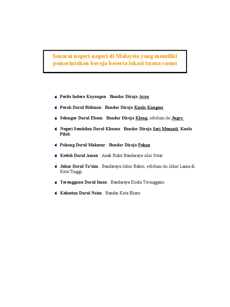 Senarai Negeri Negeri Di Malaysia Yang