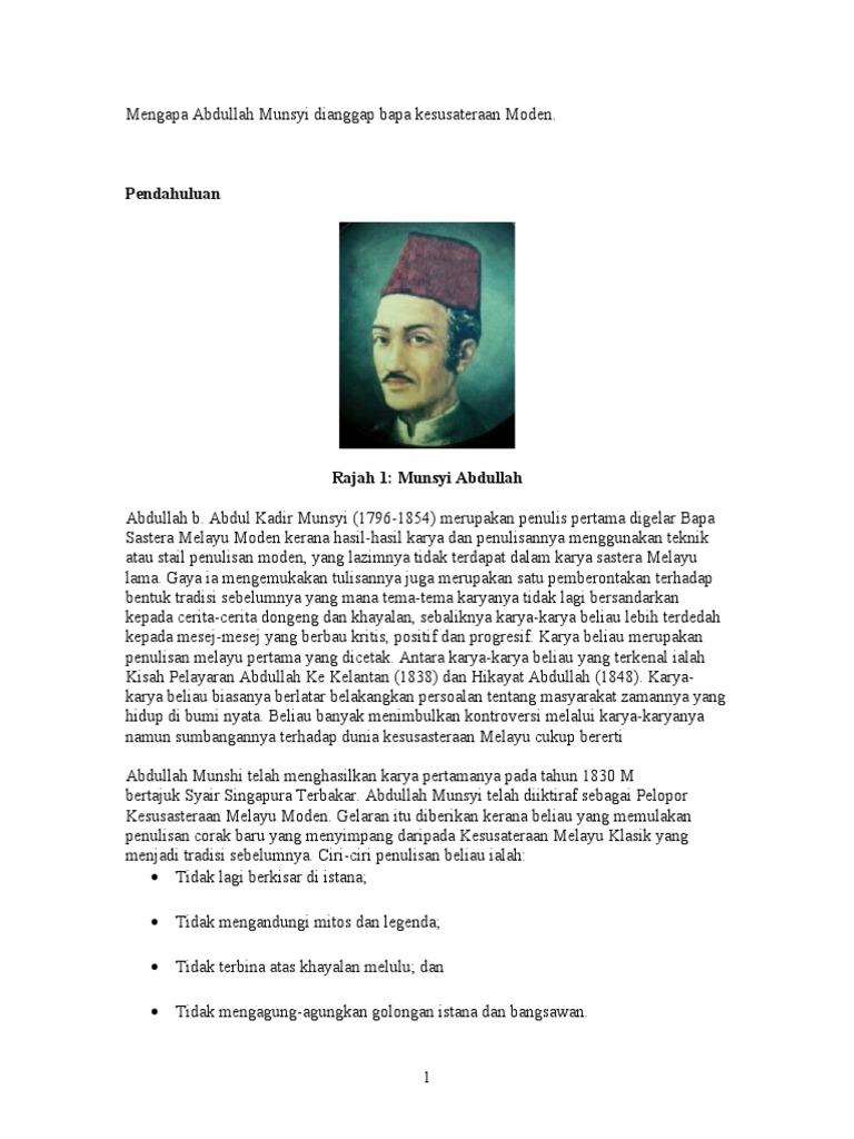 Mengapa Abdullah Munsyi Dianggap Bapa Kesusateraan Moden