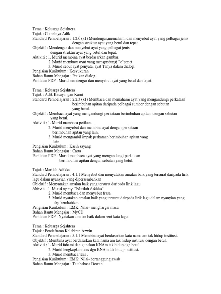 Kata Ganda Penuh Tahun 1
