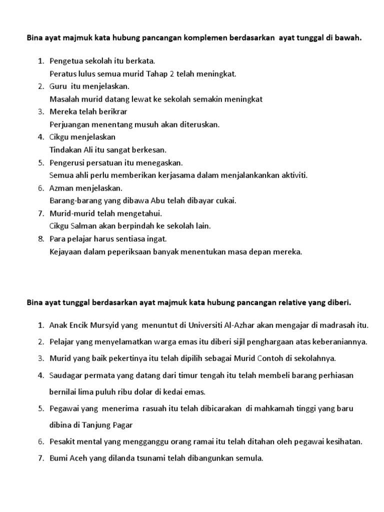 Jenis Dan Contoh Ayat Majmuk Contoh Oren Cute766