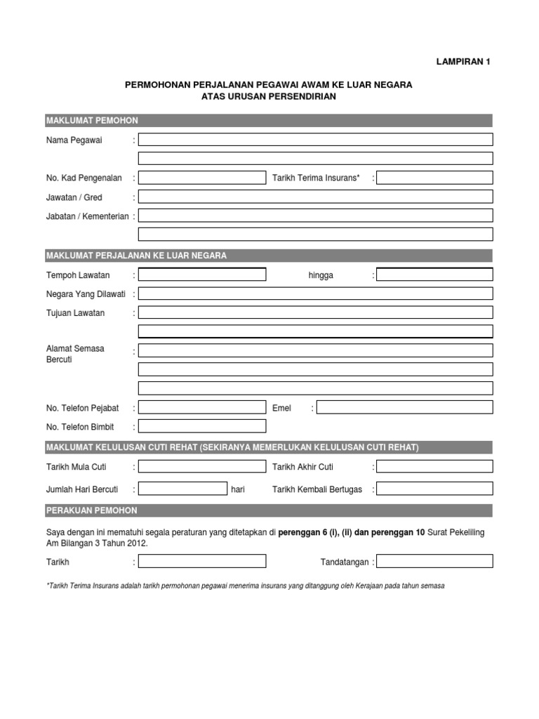 Permohonan Perjalanan Pegawai Awam Ke Luar Negara Atas Urusan Persendirian Surat Pekeliling Borang Permohonan Mykssr Com