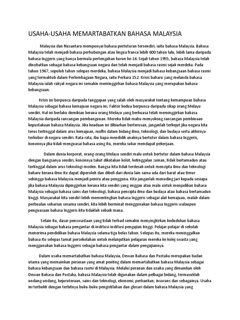 Karangan Bm Spm Langkah Langkah Memartabatkan Bahasa Melayu