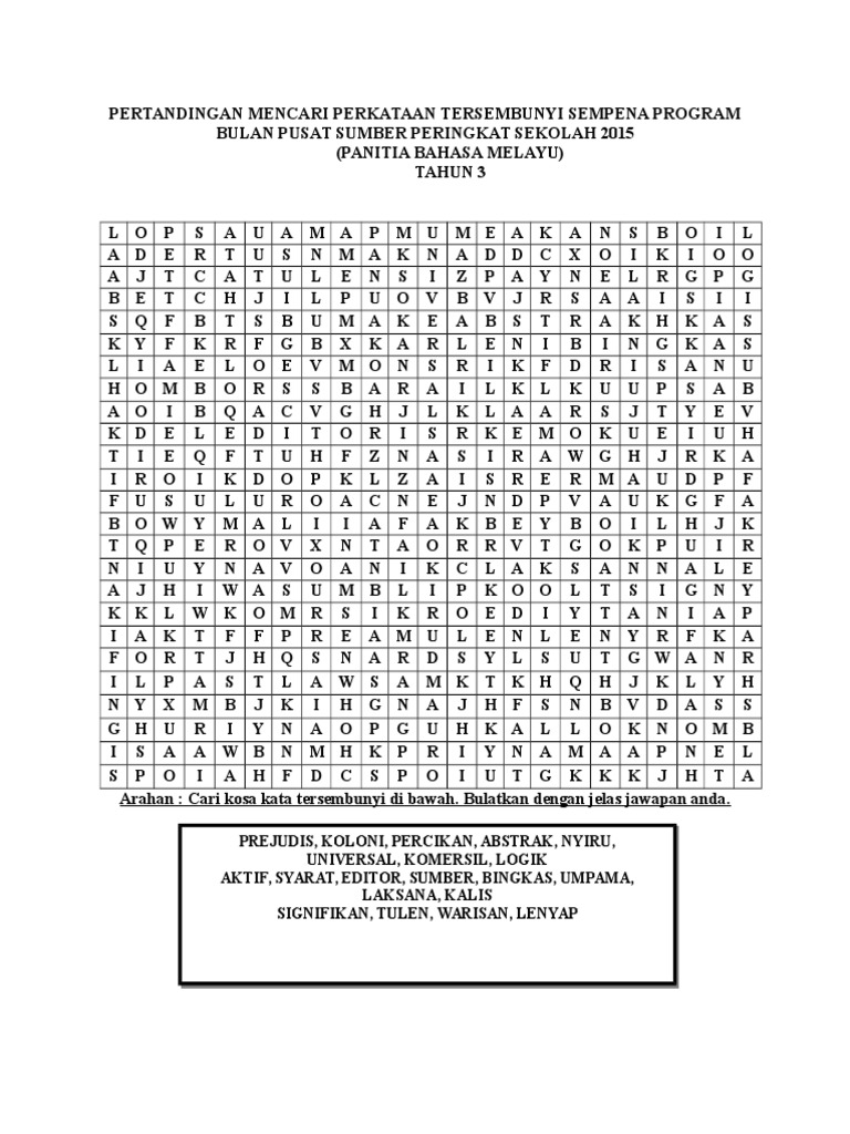 Cari Perkataan Tersembunyi Koleksi Bank Soalan Sekolah Facebook