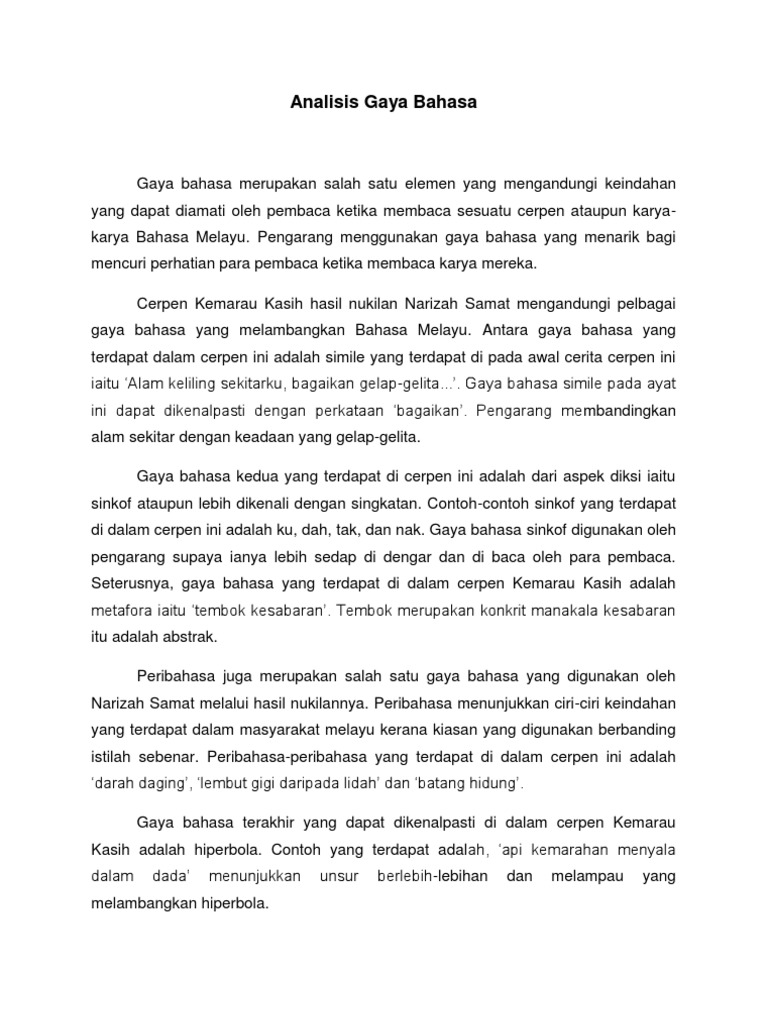 Cerita Pendek Contoh Cerpen Bahasa Melayu