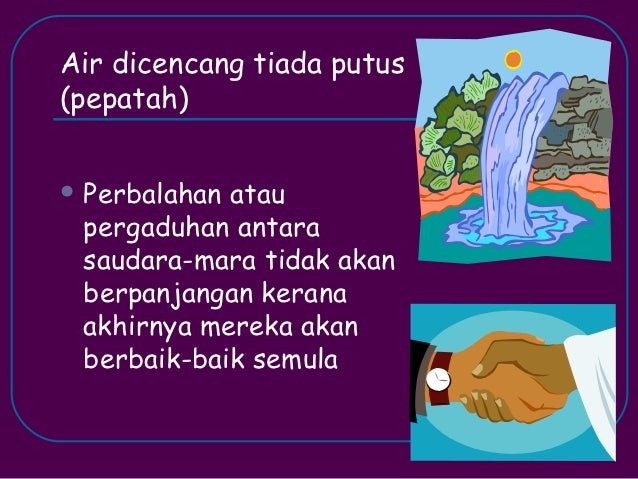 Contoh karangan pmr air dicincang tidak akan putus contoh karangan upsr. Mintak halal nak amek sikit 2 isi cerita ni. Peribahasa ini memberi maksud sebagai perselisihan antara adik beradik tidak akan kekal lama dan akhirnya akan berbaik semula. Bak kata pepatah melayu air yang dicincang tidak akan putus.