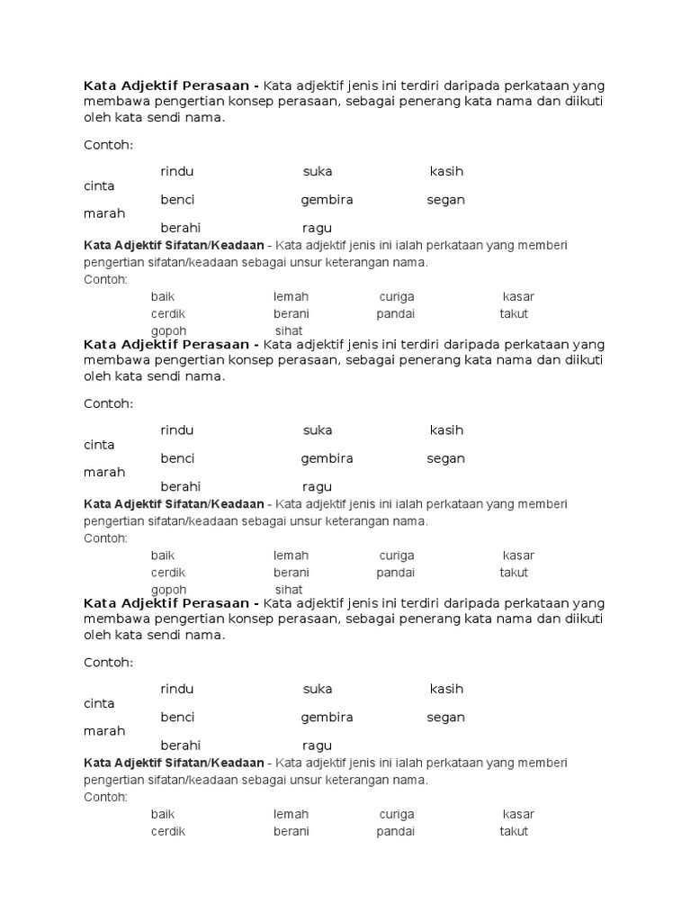 Materi Pelajaran 6 Contoh Ayat Kata Adjektif Bentuk