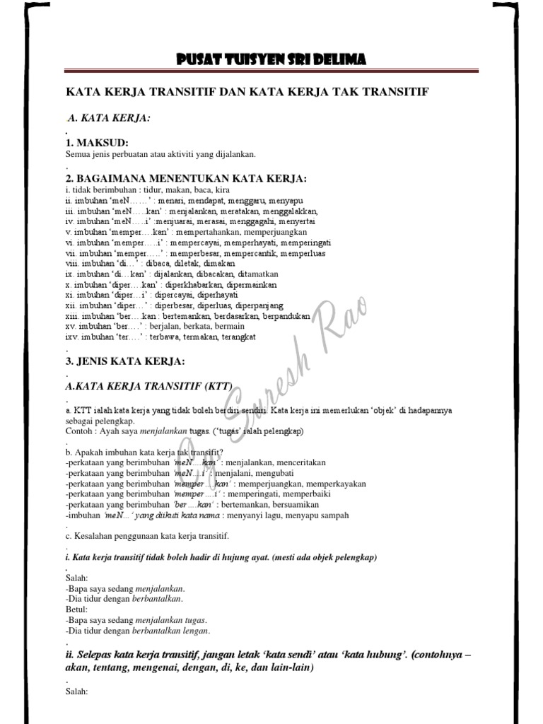 Kata Kerja Transitif Dan Kata Kerja Tak Transitif Pdf Document