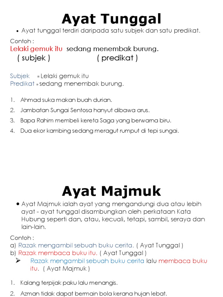 Contoh Ayat Majmuk Dan Ayat Tunggal