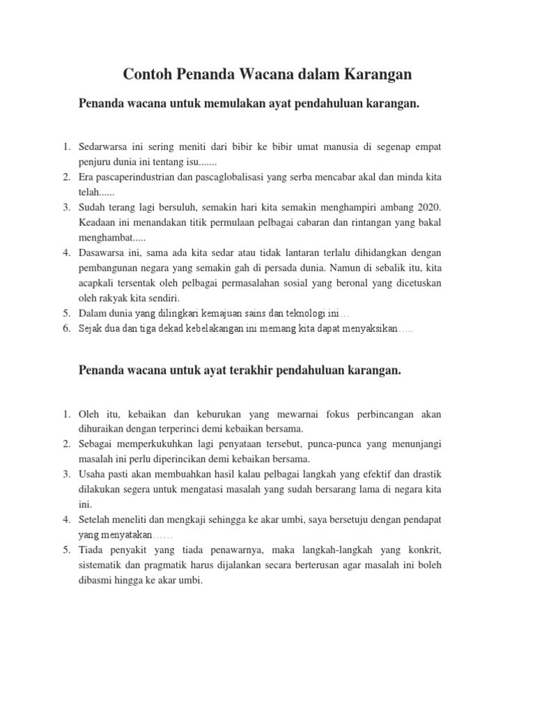 Contoh Penanda Wacana Dalam Karangan