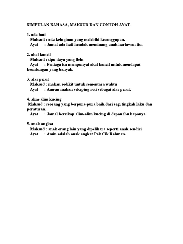 Maksud Simpulan Bahasa Dan Contoh Peribahasa Simpulan