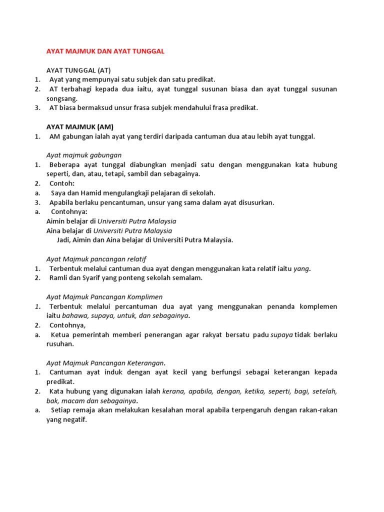 Contoh Ayat Majmuk Dan Ayat Tunggal