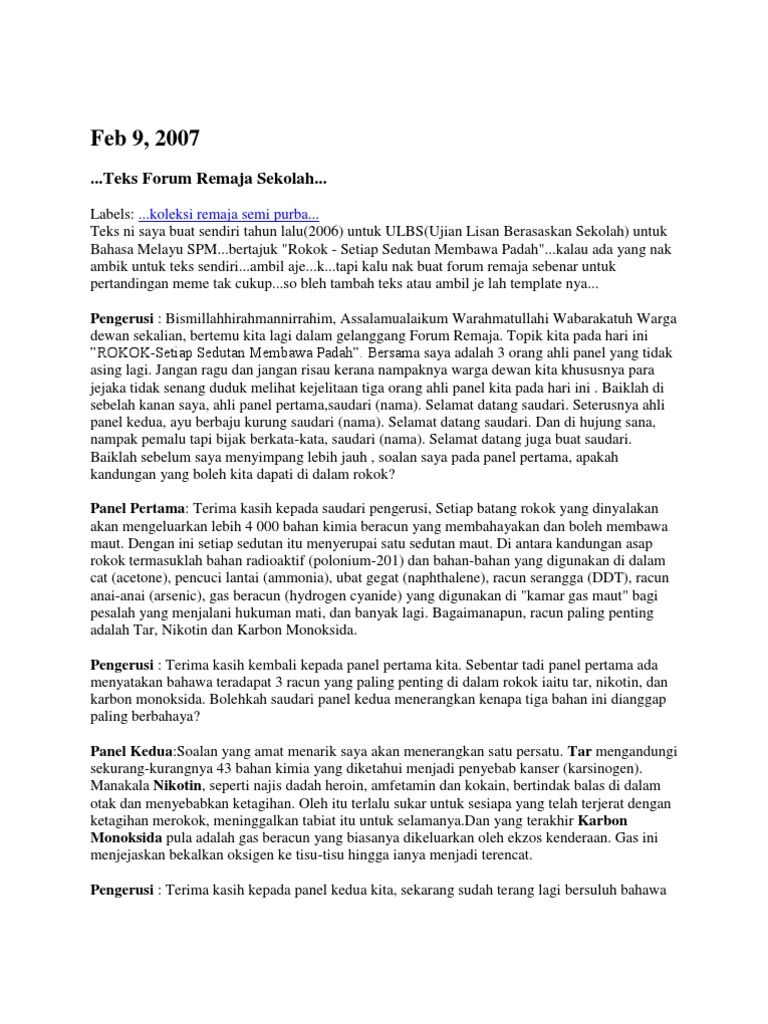 Contoh Teks Forum Untuk Ulbs Tingkatan 4