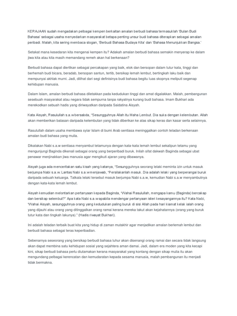 Contoh karangan budi bahasa budaya kita spm. Single sign on sso. Budi bahasa budaya kita kamus pusat rujukan persuratan melayu. Bilangan mereka yang membaca kini boleh dihitung menggunakan jari. Cara menjaga kesihatan diri dan keluarga.