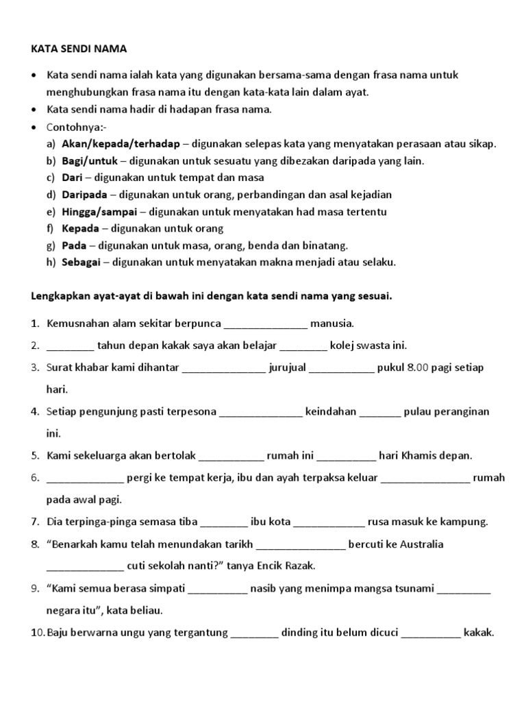 Latihan Kata Sendi Nama Saya Nak Belajar Bahasa Melayu Dan Sejarah Facebook