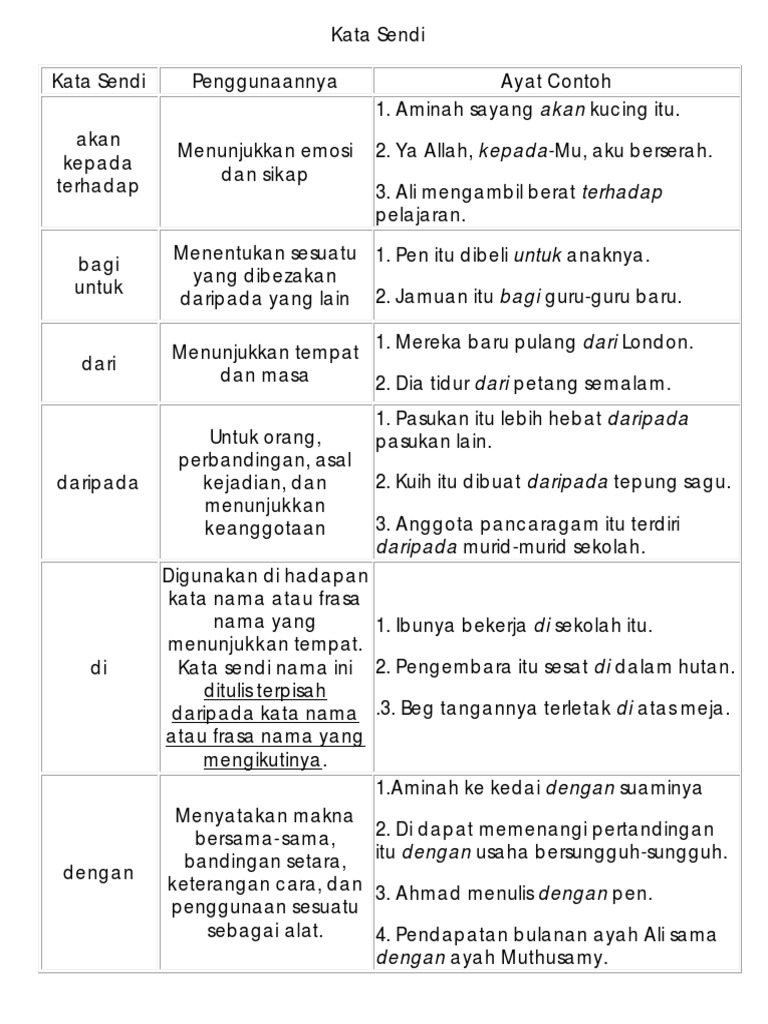 Contoh Kata Sendi Nama Tahun 5