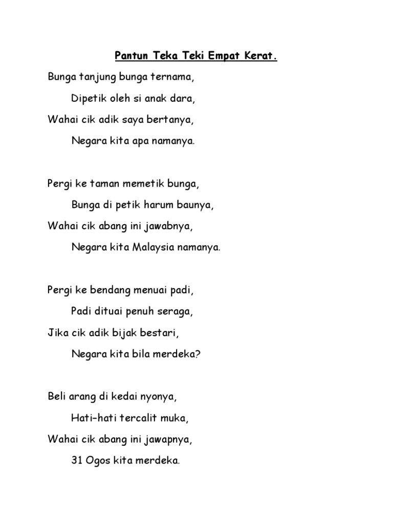 Pantun Teka Teki Empat Kerat