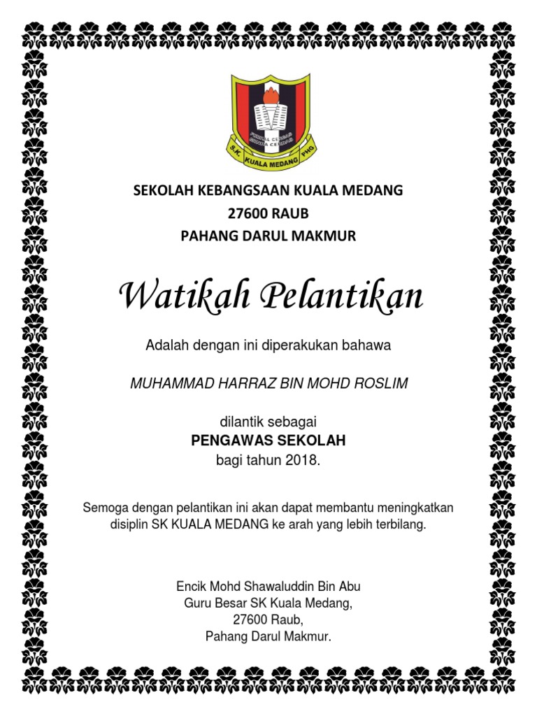 Pusat Sumber Sk Hijrah Badong Daro Contoh Sijil Watikah Perlantikan Pengawas Pss