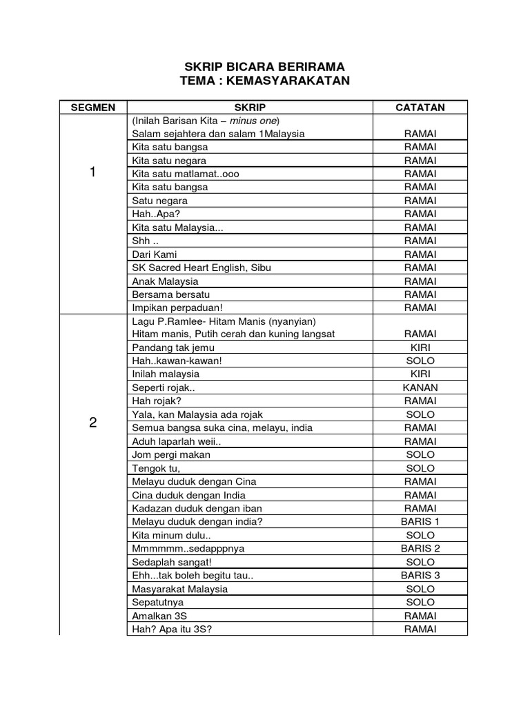 Doc Skrip Bicara Berirama Bahasa Penyatu Bangsa Mendukung Transformasi 1malaysia Siti Halimah Academia Edu