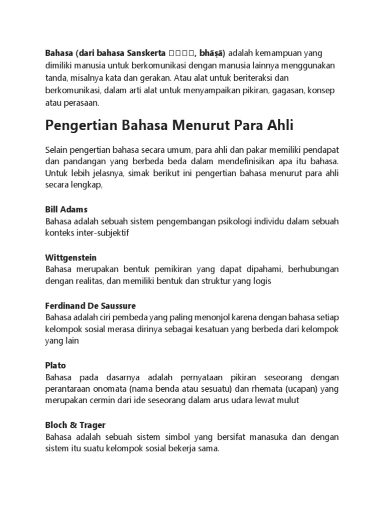 10 Pengertian Bahasa Menurut Para Ahli Dalam Dan Luar Negeri Ayo Berbahasa