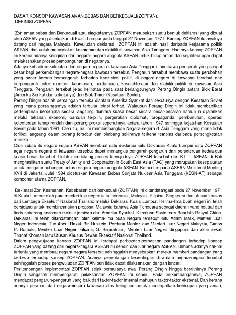 Deklarasi Kuala Lumpur 1971 Kesepakatan Zopfan Di Asean