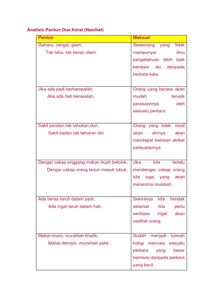 Analisis Pantun Dua Kerat Ting 2