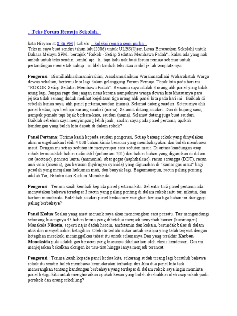 Contoh Teks Forum Untuk Ulbs Tingkatan 4