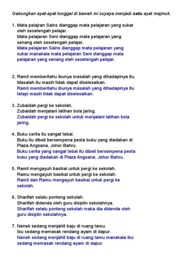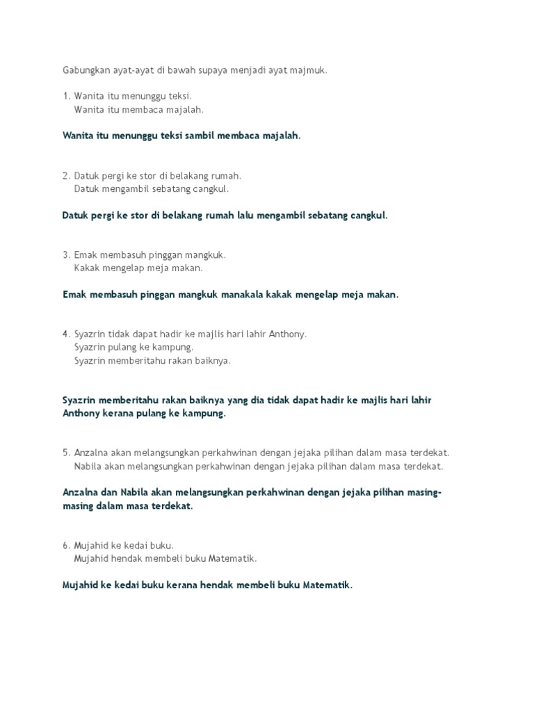 Doc Sambungkan Ayat Ayat Tunggal Di Bawah Ini Supaya Menjadi Ayat Majmuk Nur Syaffiqah Syazza Academia Edu