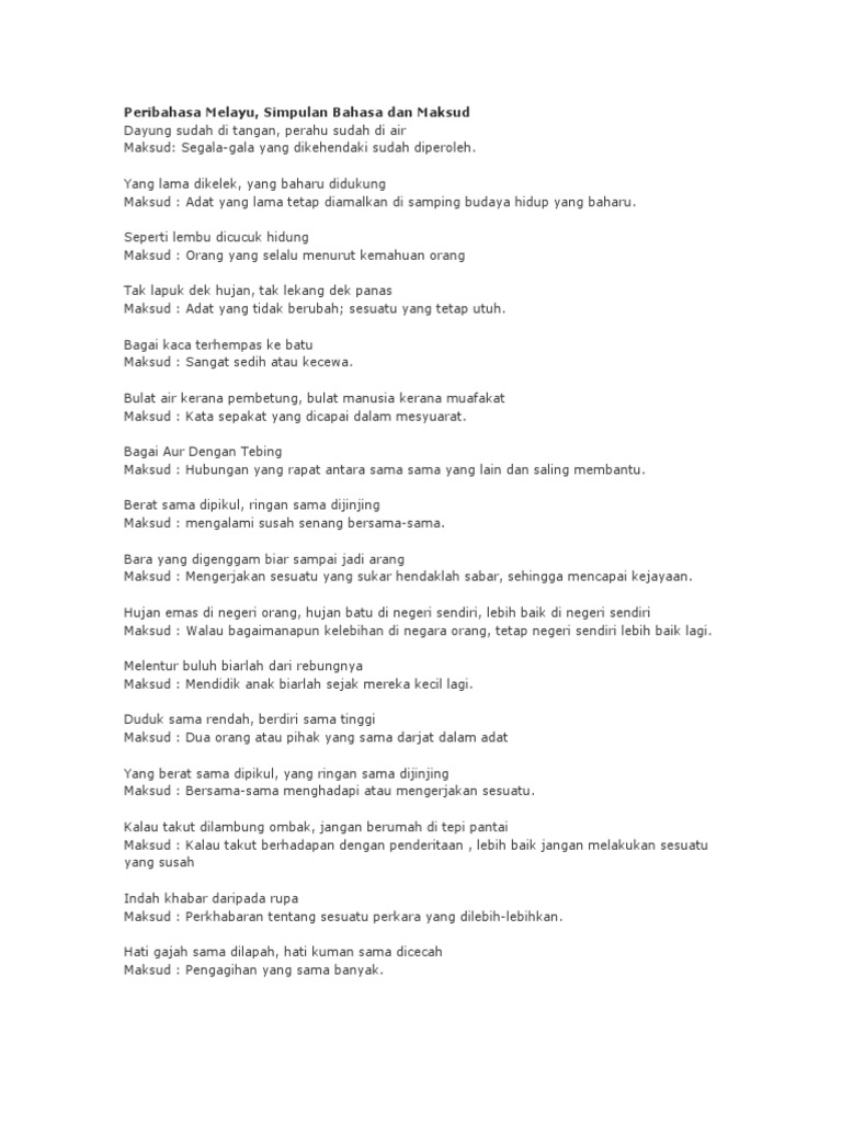 Senarai Peribahasa Dalam Buku Teks Bahasa Melayu Tingkatan 4 Dan 5