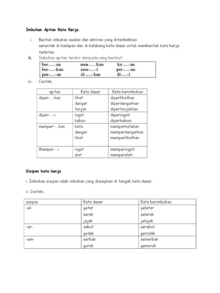Imbuhan Apitan Kata Kerja Memper Dan Sisipan