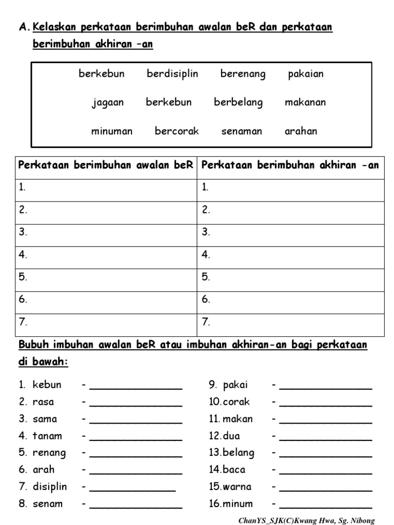 Latihan Imbuhan Awalan Dan Akhiran Tahun 2