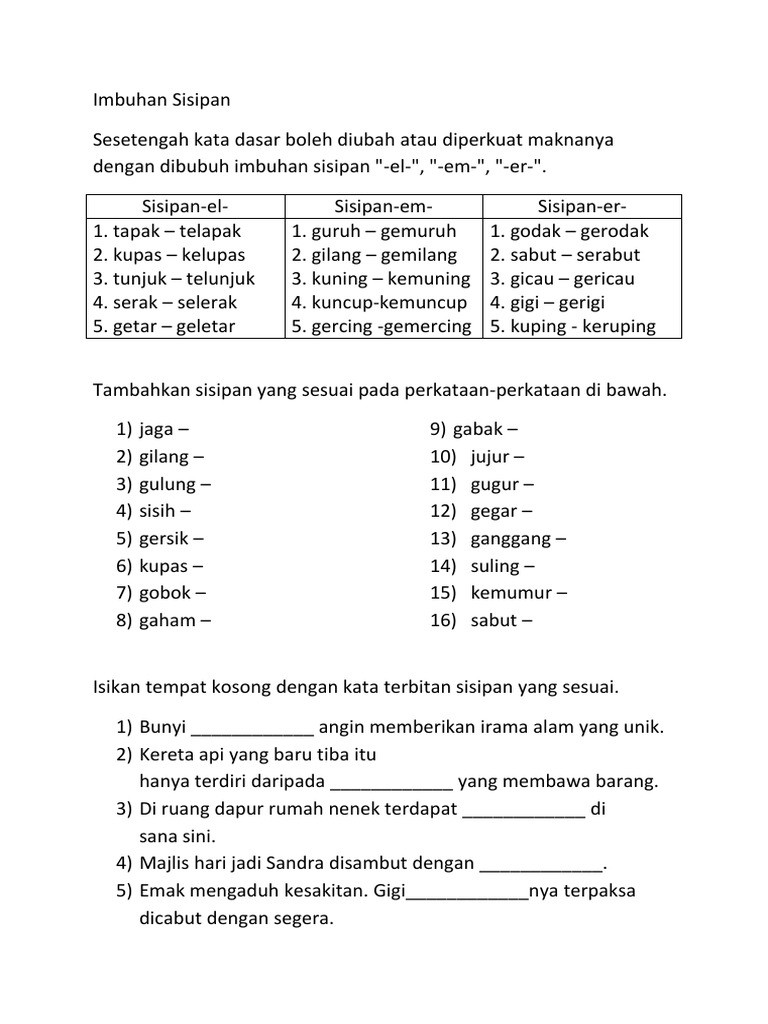 Latihan Imbuhan Sisipan Tahun 5