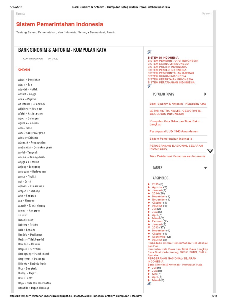 Bank Sinonim Antonim Kumpulan Kata Sistem Pemerintahan Indonesia Pdf