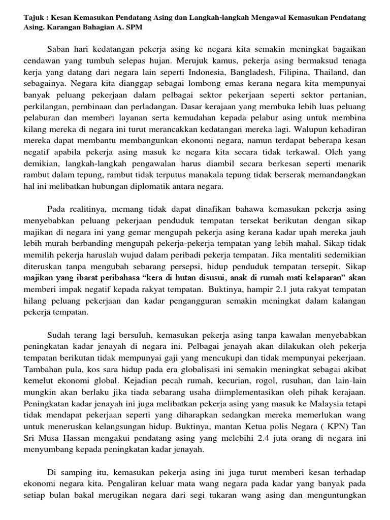Kesan Kemasukan Pendatang Asing Ke Malaysia Dan Cara Mengawal