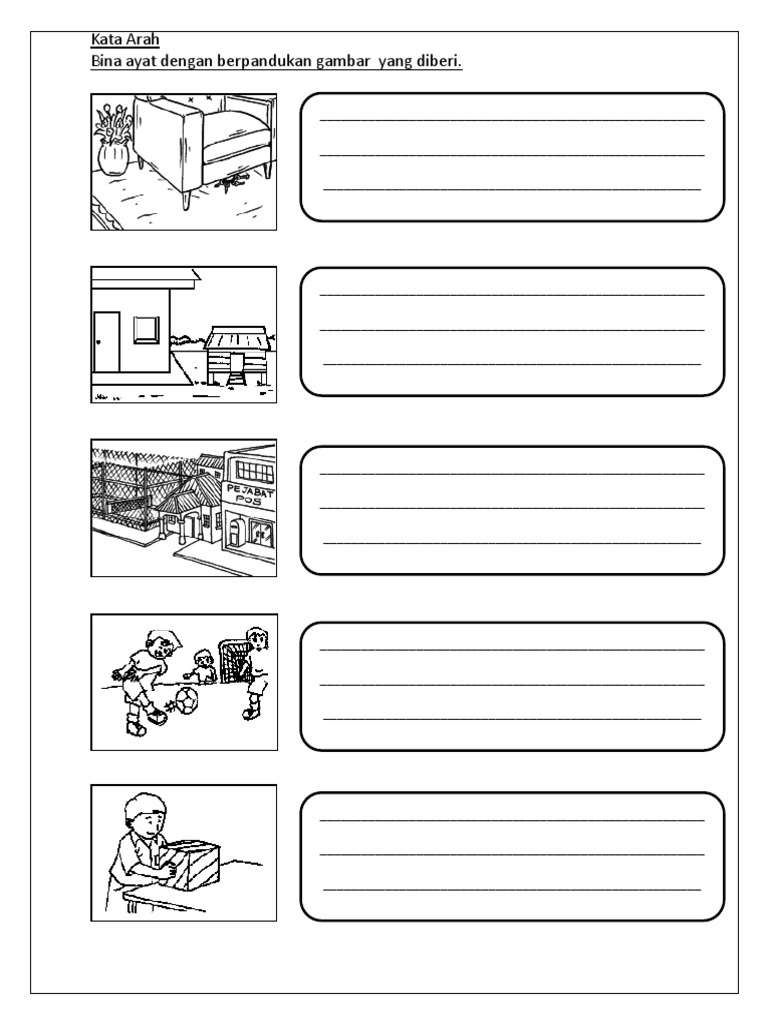 Image Result For Lembaran Kerja Kata Arah Writing Pictures Preschool Activities Printable Malay Language