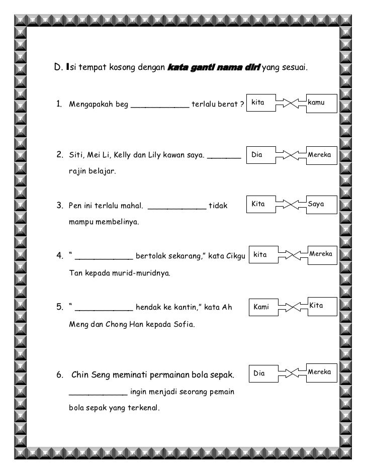 Mari Belajar Bahasa Lembaran Kerja Kata Ganti Nama Diri Pertama Dan Kedua