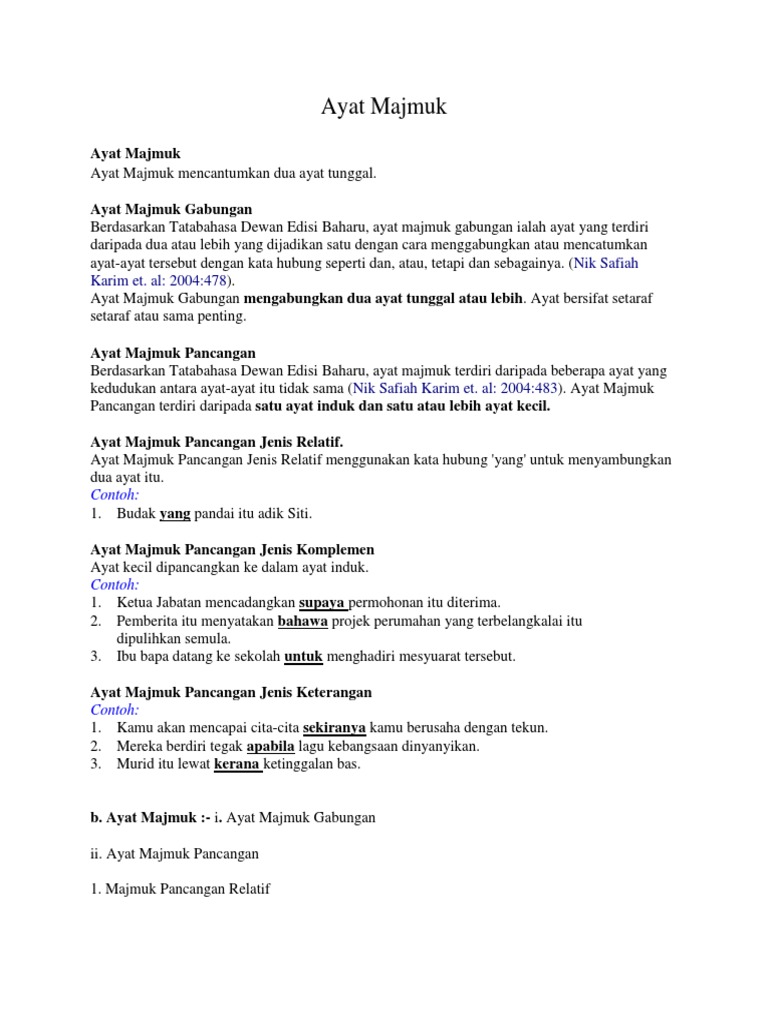 2 1 1 ayat majmuk gabungan ialah ayat terdiri daripada 2 ayat atau lebih kemudian digabungkan menjadi ayat majmuk gabungan dengan menggunakan kata hubung gabungan. Untuk ismaliyana pergi ke pasar untuk membeli daging dan sayur sayuran. Kata hubung pancangan keterangan. Kata hubung pancangan کات هوبوڠ ڤنچڠن kata hubung pancangan relatif کات هوبوڠ ڤنچڠن ريلاتيف.