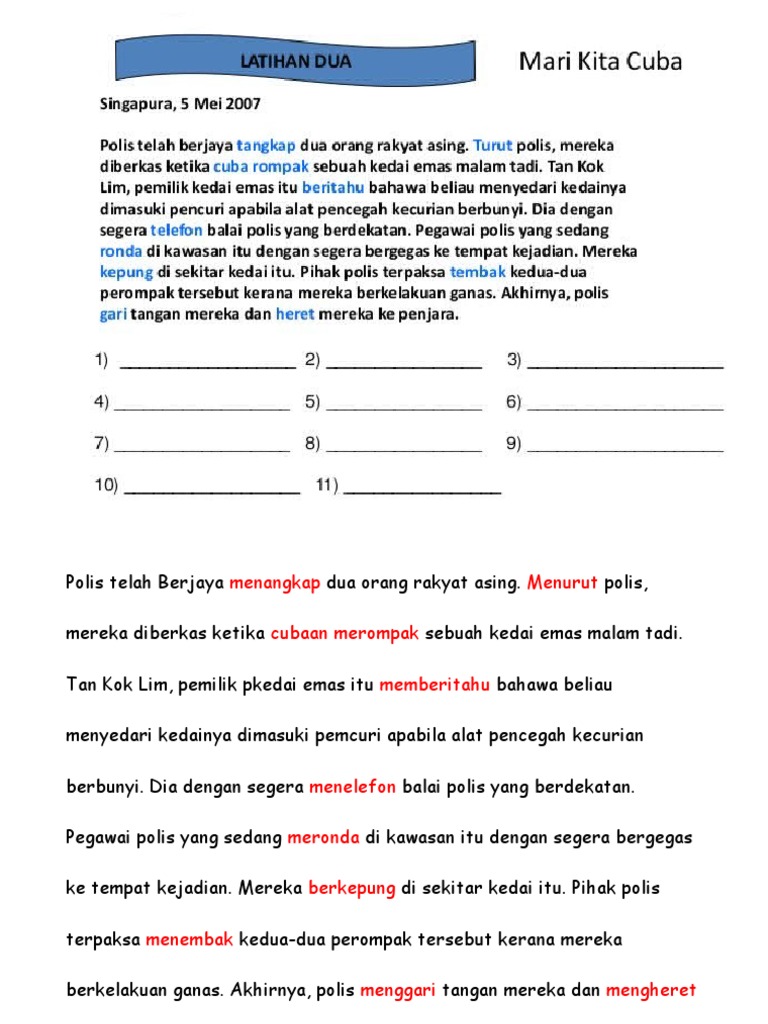 Contoh Ayat Kata Tunggal Tahun 2 Polis