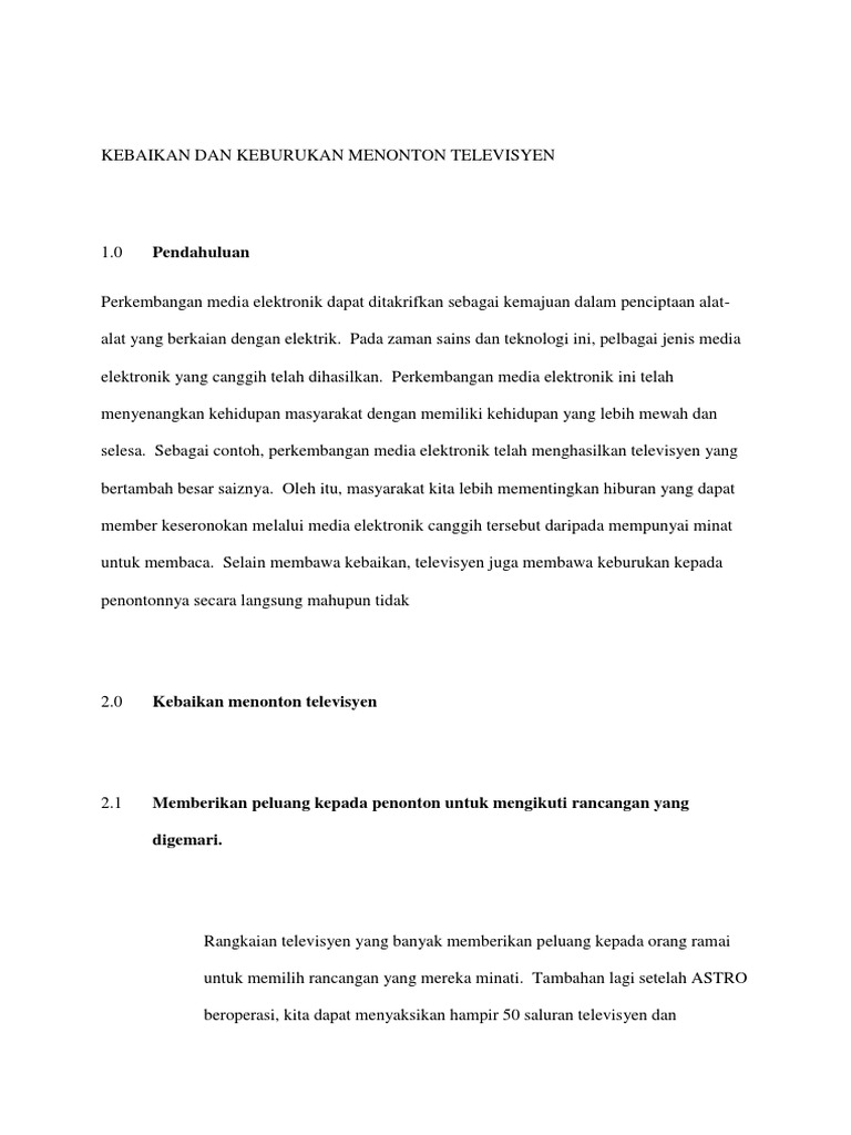 Contoh Contoh Karangan Sekolah Rendah Perbincangan Kebaikan Dan Keburukan Menonton Televisyen