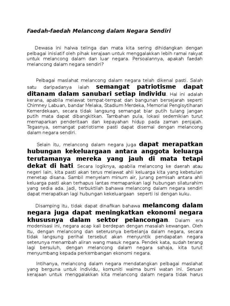 Faedah Faedah Melancong Dalam Negara Sendiri Docx Document