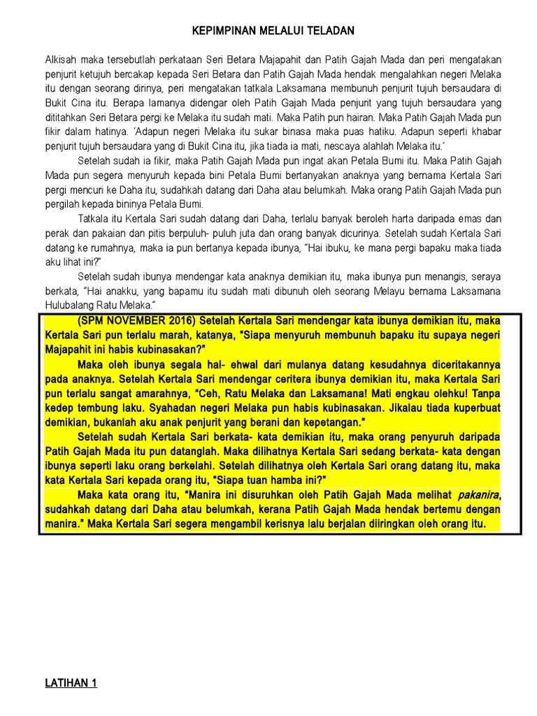 Laman Bahasa Melayu Spm Nota Prosa Tradisional Kepimpinan Melalui Teladan Ting 4