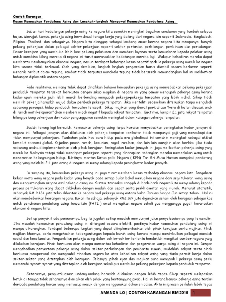 Kesan Pendatang Asing Tanpa Izin Karangan Spm
